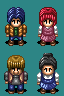もう我が家には子供なんていないんですが、それでもやっぱり居間に兜を飾ったりしてます。 さて、今回のお題はコレ。 一般人。 ヘタな仲間キャラよりもゲーム中での登場回数が多いので、なかなか手を抜けないグラフィックです。 基本的に、町の人はこれらと子供キャラで構成されています。 しかし外見は同じでも中身は千差万別で、実際に話してみないとその人格はわかりません。 いいおっさん・悪いおっさんなど色々います。 まあ、こういうのもコンピュータRPGの醍醐味ですね。 でも「ドラマチックロード」では、汎用キャラで悪いおっさんはあまりいなかったかな・・・? スーファミのFFにはおじさん・おばさん用の汎用キャラがいないんですね。 みんな若者と同じ絵でした。 当時プレイしている時は全く気になりませんでしたが、一般人をあんなわずかなバリエーションでカバーしていたとは意外でした。 何事も演出次第ということでしょうか。 ※普通におっさんいました。適当な事言ってすみません。 逆にアークザラッド2は一般人のバリエーションの多いこと多いこと。 国・年齢・性別毎に全然違うグラフィックです。 恐れ入りますなあ。 PR この度、ついに「ドラマチックロード」のアレンジ・プロフィールモードをフリー公開しました。 突然ですが、ドラマチックロードのページに全キャラの成長率表をアップしました。 今週は特に画像が無いです。